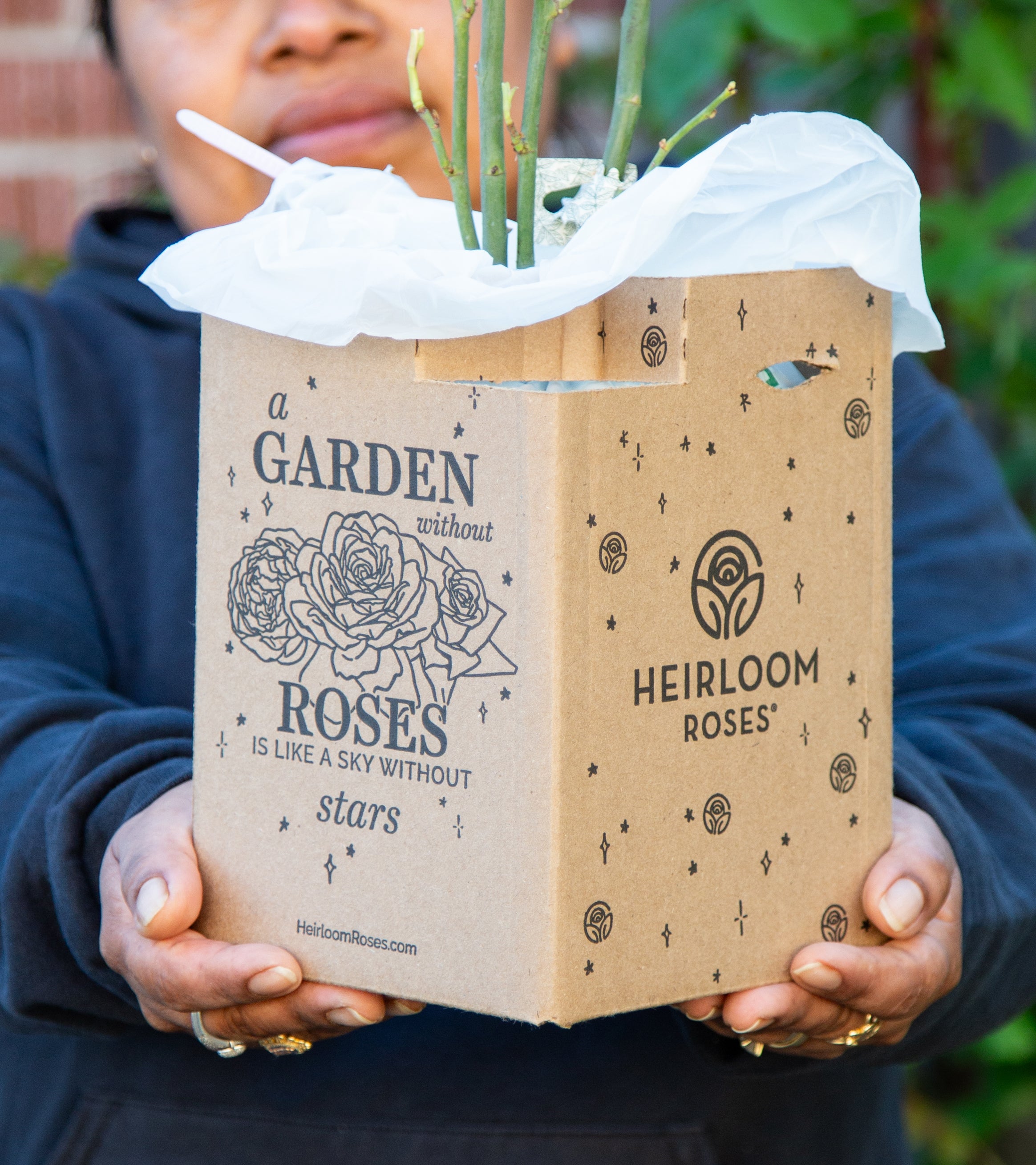 While cardboard is a more sustainable choice than plastic, we don’t recommend planting the box. For best results, remove the rose from the packaging before planting. Then, recycle the cardboard to keep it out of landfills and give it a second life — it's a small step that makes a big difference for the planet!