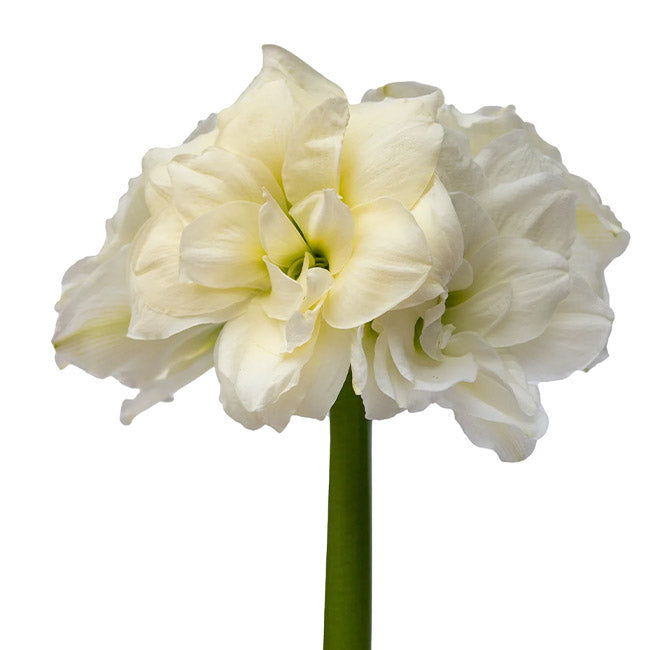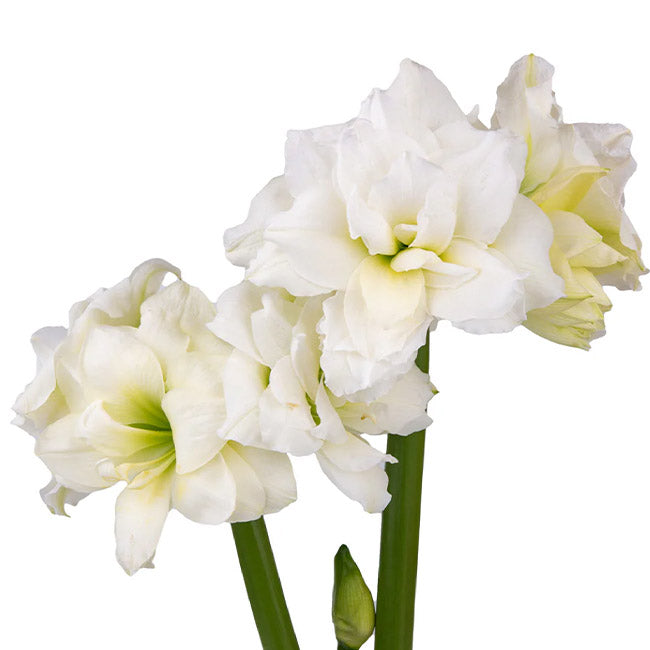 • Alfresco brings a gentle glow during the winter months with creamy white petals with a soft, green eye. This pre-potted variety produces 2–3 blooms per stem on 18" stalks and is easy to grow in bright indoor light. A calming choice for gifting or decorating this season.