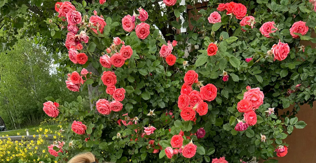 15 year old America rose bush! It’s huge and amazes us every year! Pumps out new blooms like crazy.
