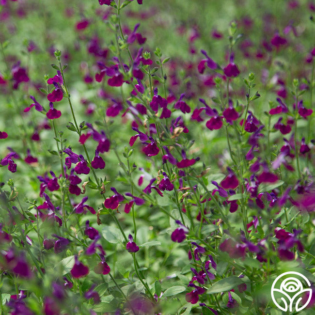 Amethyst Lips Salvia begins with amethyst-purple flowers that fade to a lighter lavender as they age. In zones 7-9, it reaches a height of about 18-24”. Its charming color and compact form make it a great choice for beds, borders, or pots.