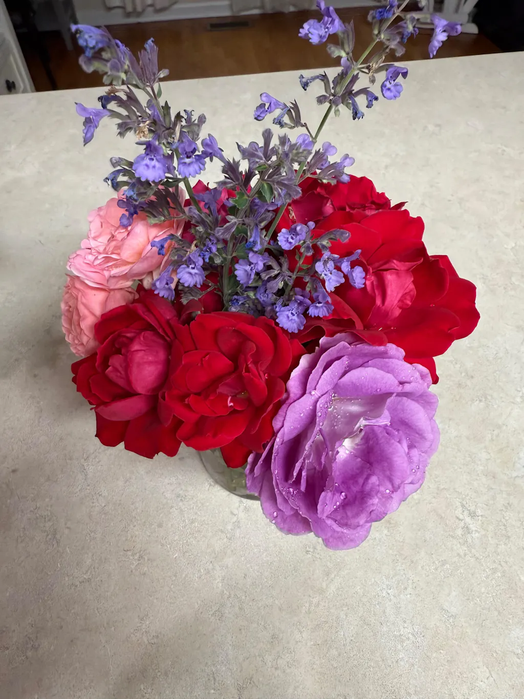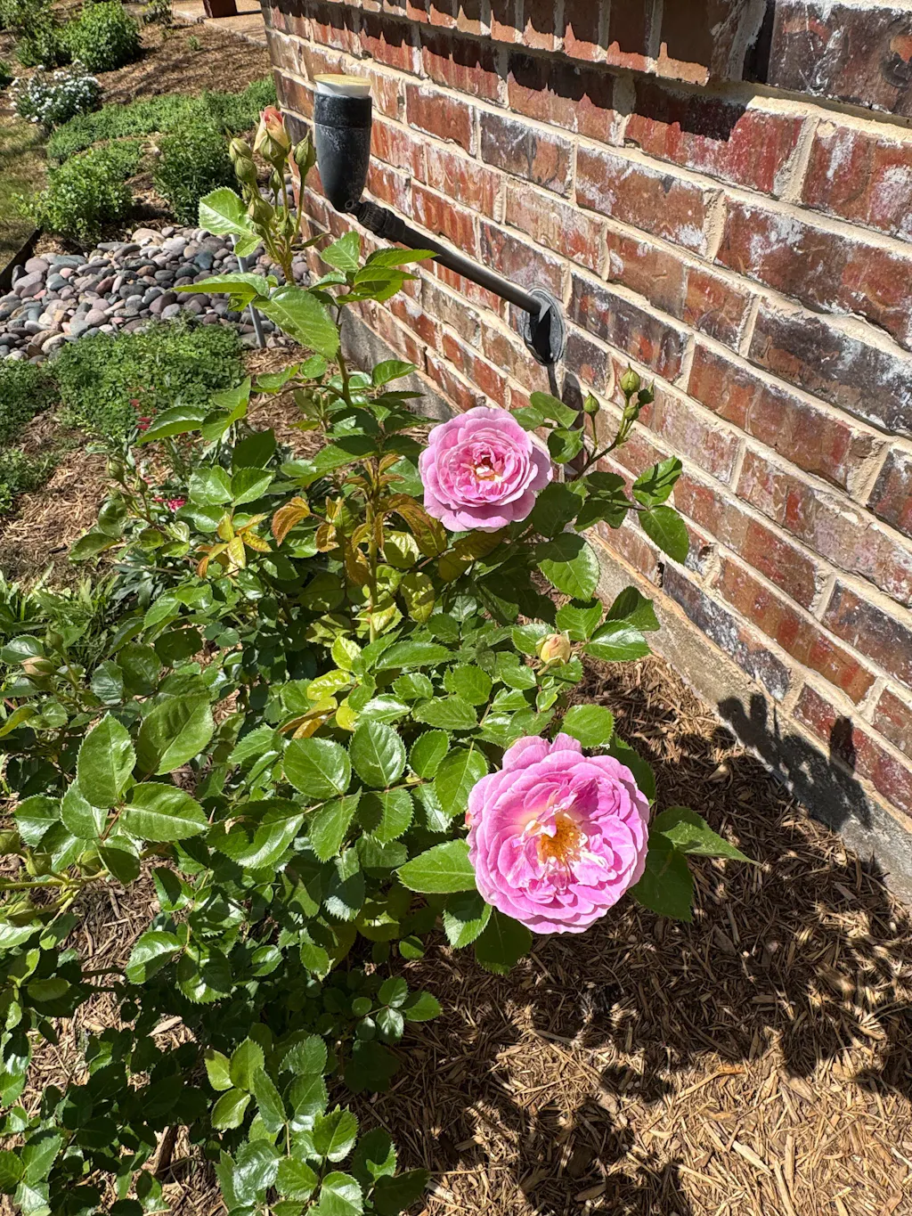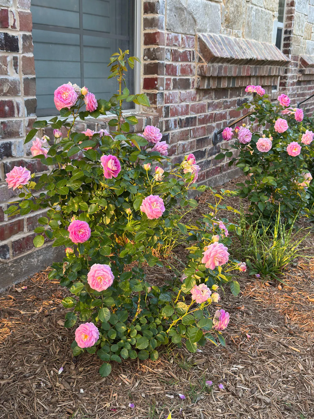 I bought this one on a whim. She produces 6-7 big puffy roses per stem at a time. Basically individual bouquets at a time. I just deadhead once the blooms are done and she gifts me more! She’s upright and full and despite the huge clumps of roses she doesn’t droop, stands tall and pretty!