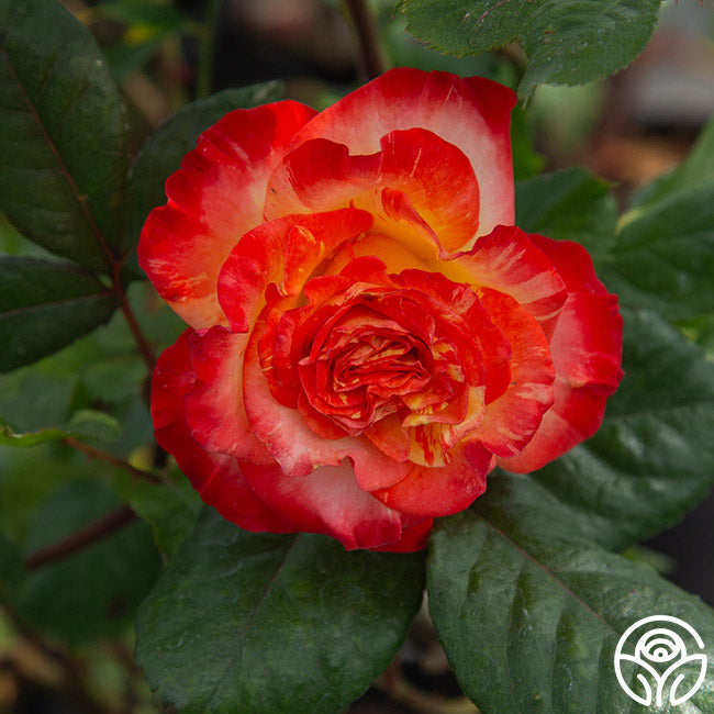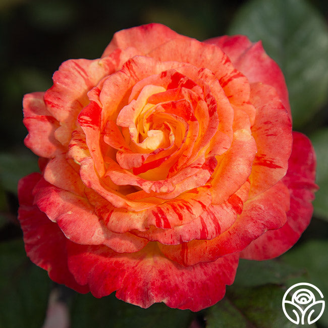 Named for the glass artist, Dale Chihuly, this rose produces the most beautiful 3½ - 4” blooms in ever-changing colors of apricot, yellow, orange, and red. Chihuly™’s colors are painted, blushed, blended and at times striped with all of these colors. This continually blooming plant has a mild tea fragrance. Expect new growth to be dark red on this Floribunda.