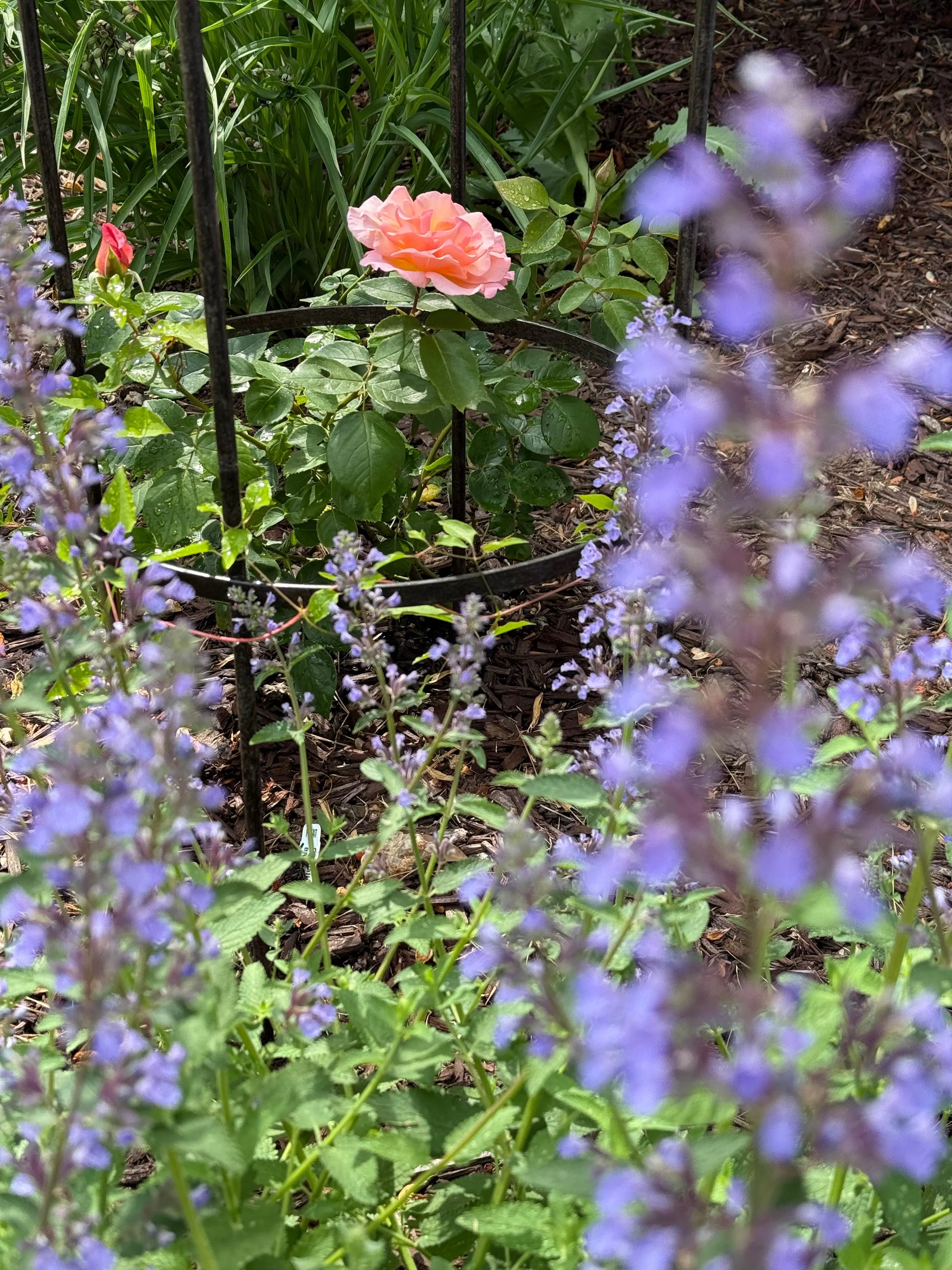 I’ve had this rose for 8 years and while it took off beautifully as soon as planted, in the last several years it’s become the star of my late spring garden. I love the color that goes from dark pink buds to pale coral-pink flowers with a yellow center when fully open. In my recently reclassified zone 7A garden, with my method of benign neglect, it has canes that easily cover the 7’ foot arch nearby. In late May it is covered with fragrant flowers. Once they fade, I can expect intermittent blooms for the rest of summer. Give this rose a nice spot and fasten your seatbelt.