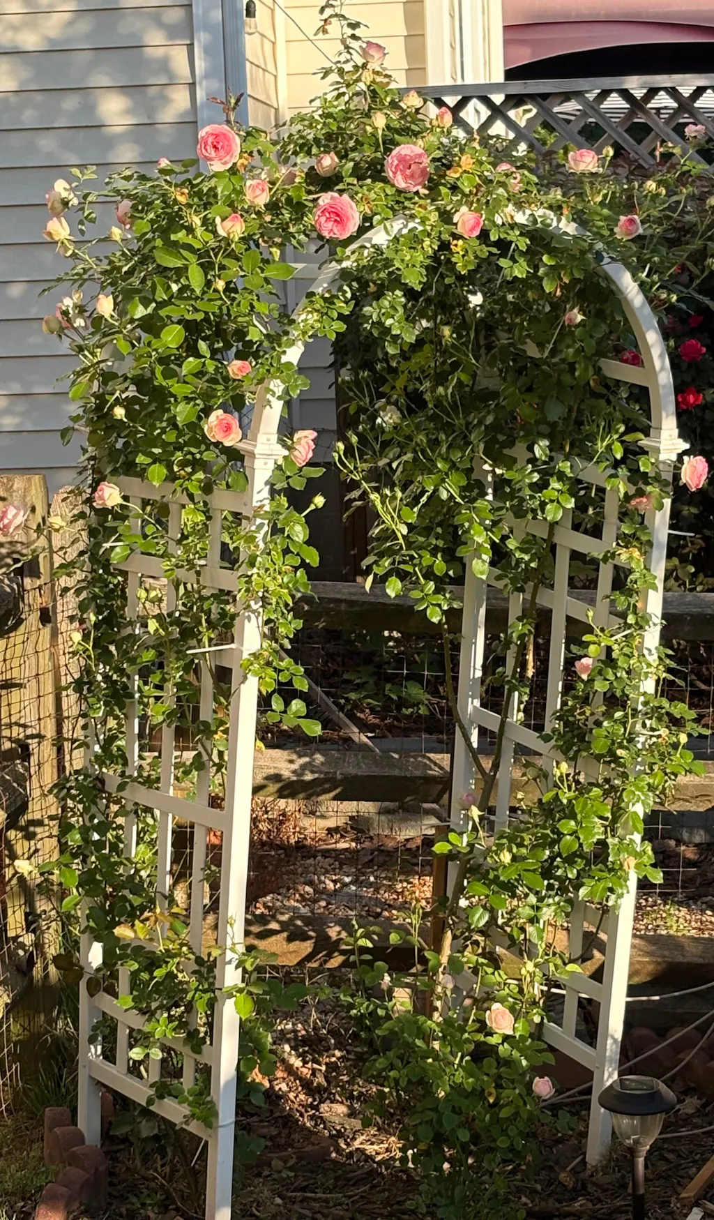 I planted this beauty three years ago of course the first year didn’t do anything. I planted too well on each side of the trellis last year the cane started growing. It bloomed some but this year it is amazing. There are buds everywhere and I am just in awe! I cannot wait to see how this beautiful beautiful creation grows and grows. I loved the eaten so much. I bought the darker version and planted it also. I always buy from heirloom roses. I plant them exactly the way they tell me too and they are just gorgeous. Of course I do maintenance. I give them fish fertilizer about every six weeks. They love it.