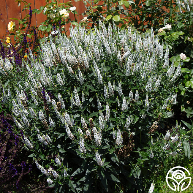 First Lady Veronica produces elegant spikes of pure white flowers that stand tall in the garden on stems of 16-20”. First Lady does best in full sun to partial shade for zones 4-9.