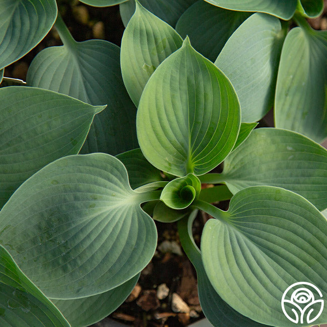 - Hadspen Blue Hosta features cool-blue foliage with heart-shaped leaves that stand in the shade garden. With a compact, clumping growth habit, it forms dense mounds, reaching a height of around 12-18”. This hosta thrives in shade gardens in zones 4-8 and holds its color longer than other blue-tinted hosta. It produces lavender flowers on 18” scapes in midsummer. - Size Information: This plant comes in a one gallon pot.