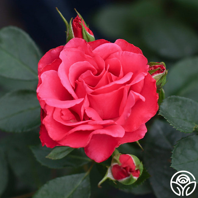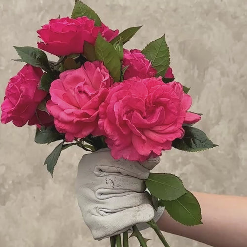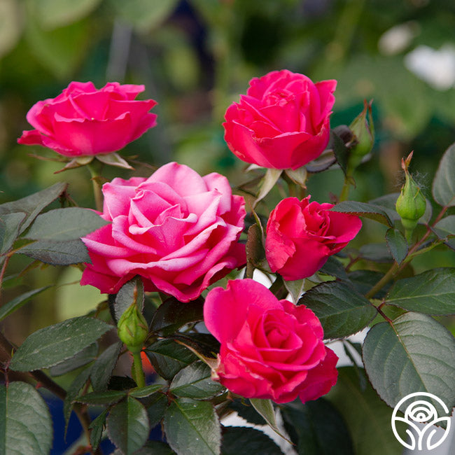 This deep pink Floribunda rose from Jalbert is extremely disease resistant, with long-lasting blooms on the plant and in a vase. Irene May’s mostly solitaire blooms average 3” with 17-25 petals. She is winter hardy for zones 4-9 and a prolific bloomer. We love her dense foliage and bright color that create a stunning contrast all summer long. Expect Irene May to maintain her upright growth habit, reaching 4-5’ tall.