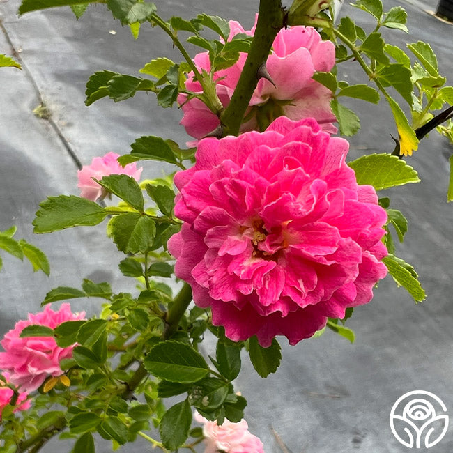 Lady Gay is a rare Rambler that has previously not been available commercially in the US. We are partnering with the American Rose Society (ARS) to save these nearly extinct ramblers from Anne Belovich’s personal rose collection with the goal of having this rose in three public gardens and at least 30 private collections. A portion of the proceeds of the sale of this rose will go back to the ARS’ Save the Ramblers initiative to further support the work of preserving these nearly extinct ramblers.