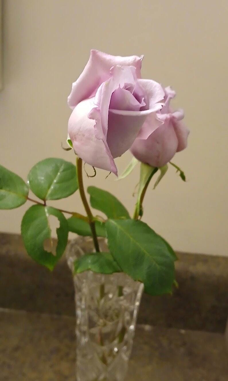 Sooo I got this rose on the 25th and its the 21st of the next month and wow it already has a flower! This rose has tk be my most expensive rose. It arrived very tiny with a broken stem. But i left it in its “pot” for 2 days then replanted it with myrtle petunias and lithodora.(just for a year) OMGG It smells so fragrant I cant wait for the next few years!