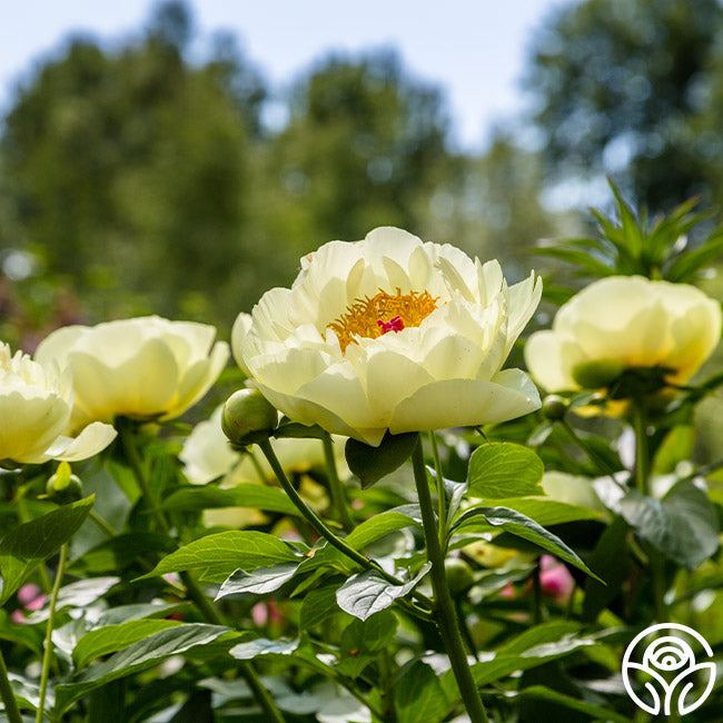 Note: Peonies start to ship in November based on availability and your zone, unlike other products. Plant around or after your first frost but before the ground freezes. Lemon Chiffon is a modern, herbaceous Peony introduced in 1981. It features the uncommon color of lemon-yellow with semi-double to double blooms that measure 5½–6" across. It has a light fragrance and soft, rounded petals. Flowers appear in early to mid-spring on sturdy 32" stems, supported by dark green foliage. Hardy in Zones 3–8, Lemon Chiffon is a great choice for bright spring borders and cut flower arrangements.