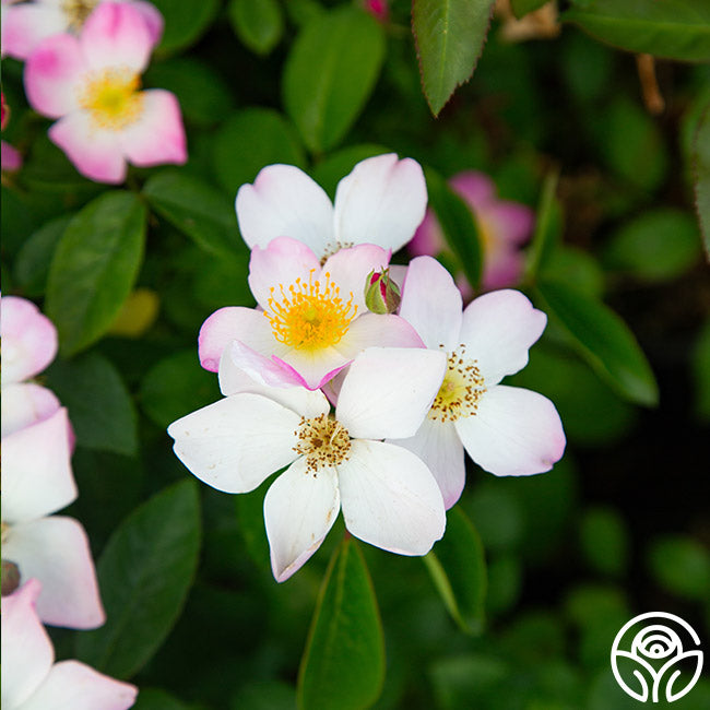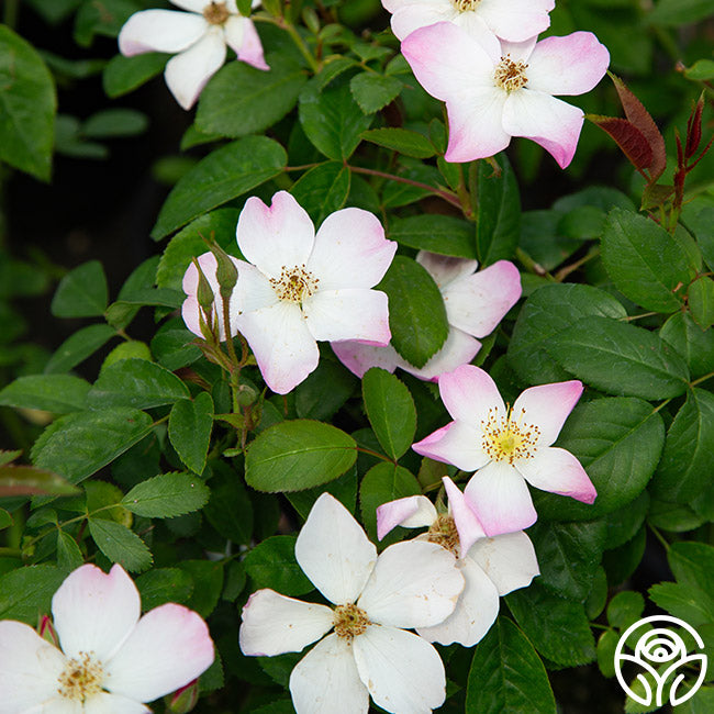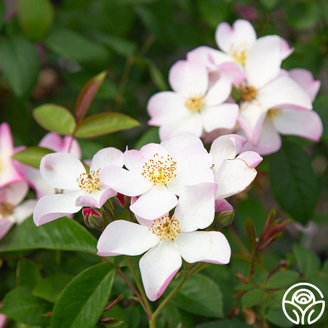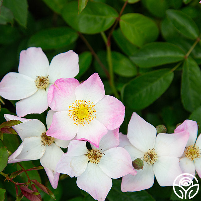 I live in Albuquerque (zone 7b) and Lydas absolutely thrive here. They’ll go from 1 foot to 3 feet high in a year, with a spread of almost 4 feet. I have 2 bushes that are in an area that gets 3-4 hours of hot afternoon sun only (shaded the rest of the day), and they’re still happy and thriving (though not quite as prolific as the ones in more sun.) I’ve also found that in cooler weather and/or more shade, the flowers are more pink, sometimes almost hot pink before slowly fading. If you are looking for an easy, low care, constantly blooming and apple-blossom sweet smelling rose, I can’t recommend Lyda rose enough!