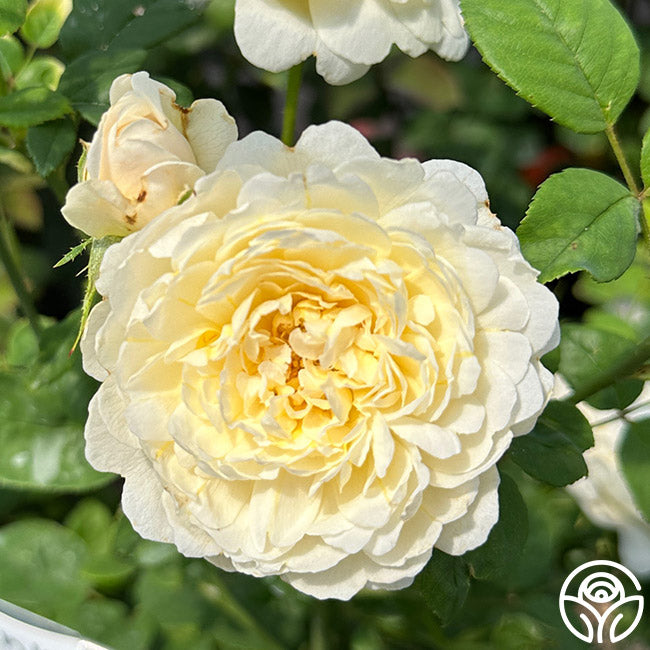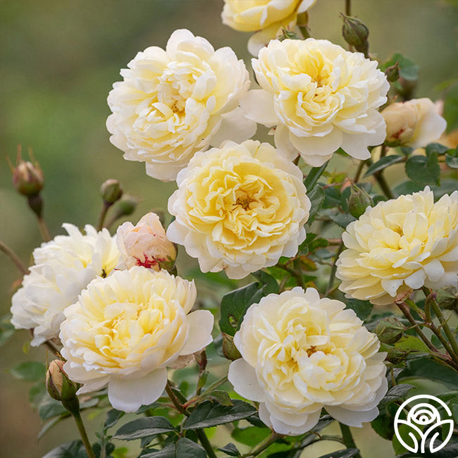 Nye Bevan™ is a pale yellow to cream David Austin shrub rose with 2–3.5" blooms and up to 54 loosely shaped petals. Its mid-green, semi-glossy foliage offers a soft backdrop to the lightly myrrh-scented flowers. This own-root rose grows well in zones 5–11, adding gentle movement and classic charm to any garden setting. Remove hips to encourage a repeat bloom.