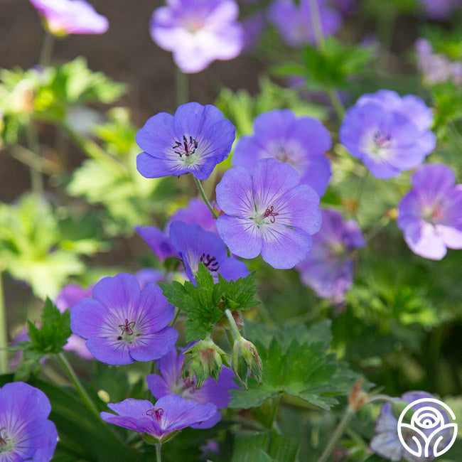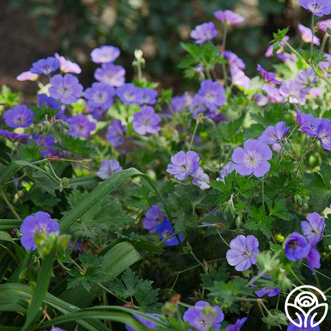 - Rozanne is an outstanding perennial Hardy Geranium known for its striking violet-blue flowers that bloom profusely from late spring through fall against bright green foliage. With a spreading and mounding growth habit, it forms low, sprawling clumps reaching a height of around 18” and is attractive throughout the season. This variety prefers well-drained soil and performs best in garden zones 4-8 - Size Information: This plant comes in a one gallon pot.