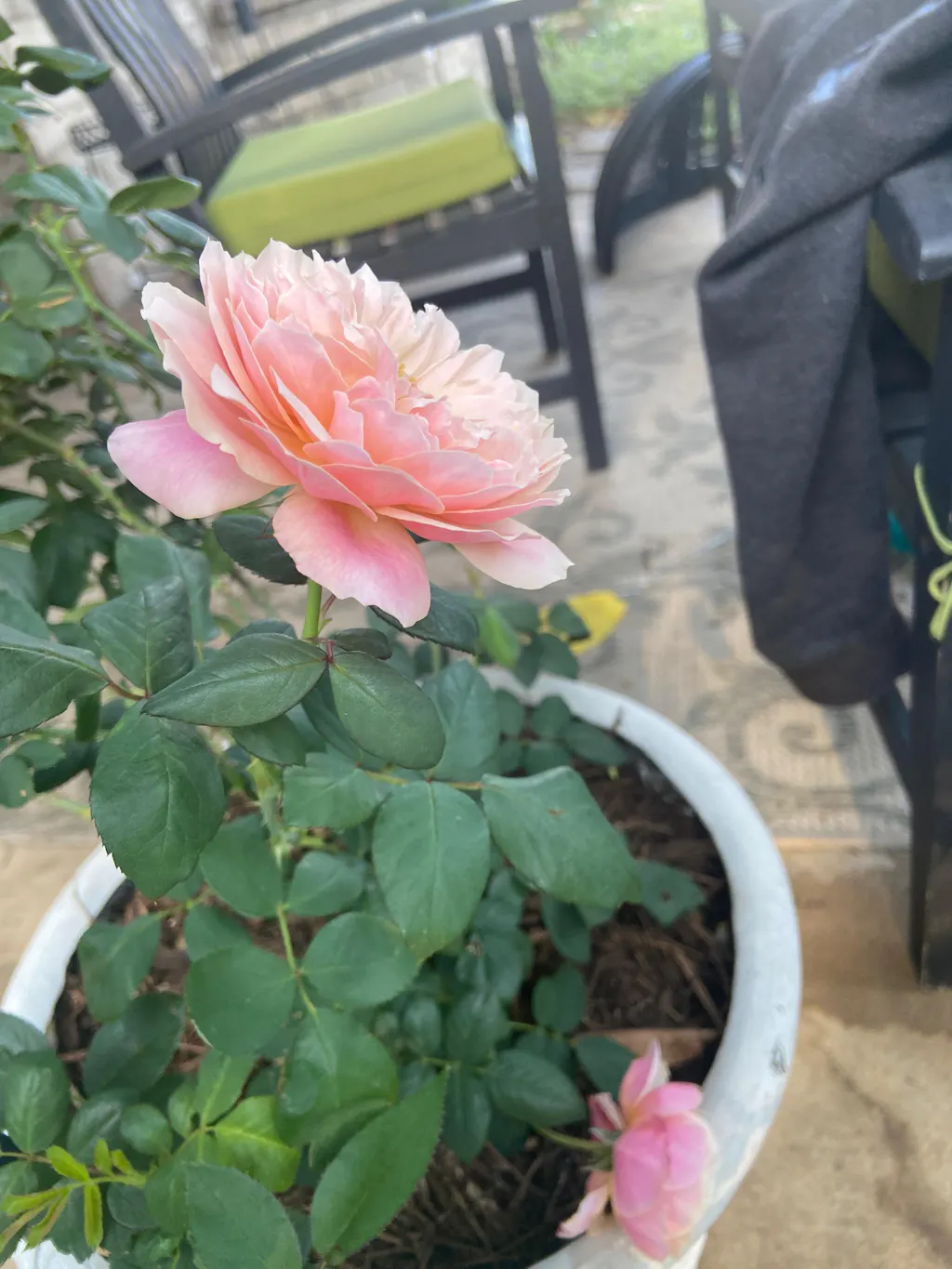If you want a tough **** container rose that blooms continuously, I heartily recommend State of Grace.