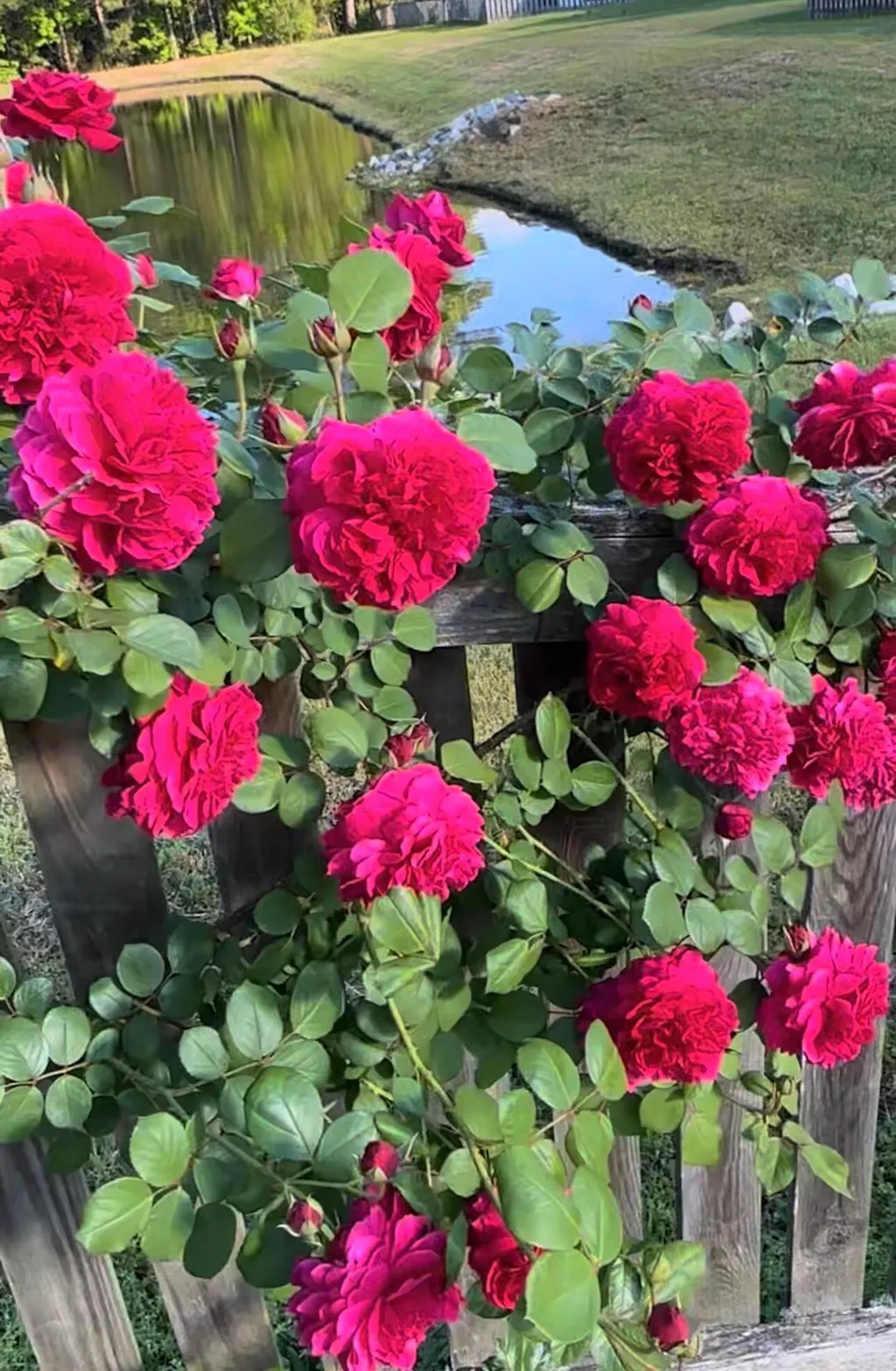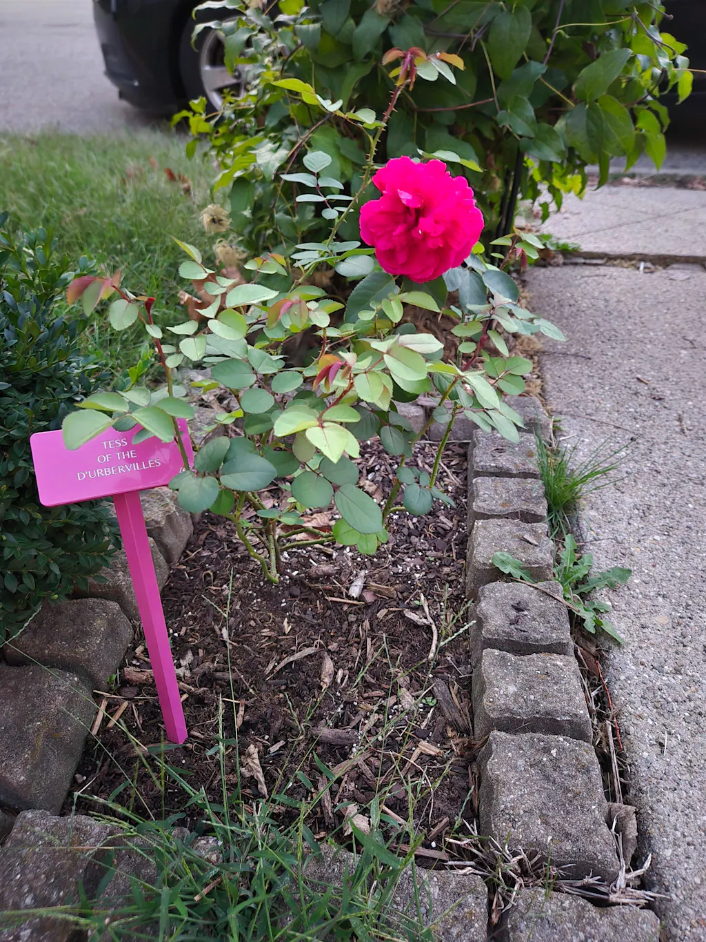 Named for the Thomas Hardy novel, Tess of the d’Urbervilles® features large, fragrant, 4" flowers with 70+ petals in a bright crimson color. Her blooms have a nice, deeply curved shape in the early stages, and then her petals turn back to a less formal flower. Tess of the d'Urbervilles®’ blooms are hefty and usually bend over, giving an elegant, cascading effect to the bush. Her growth is robust and spreads against large, dark green foliage. We love Tess of the d'Urbervilles®’ old rose and fruity-myrrh fragrance and that she is a generous, repeat bloomer. She can makes an excellent Climber and be grown in a large container.
